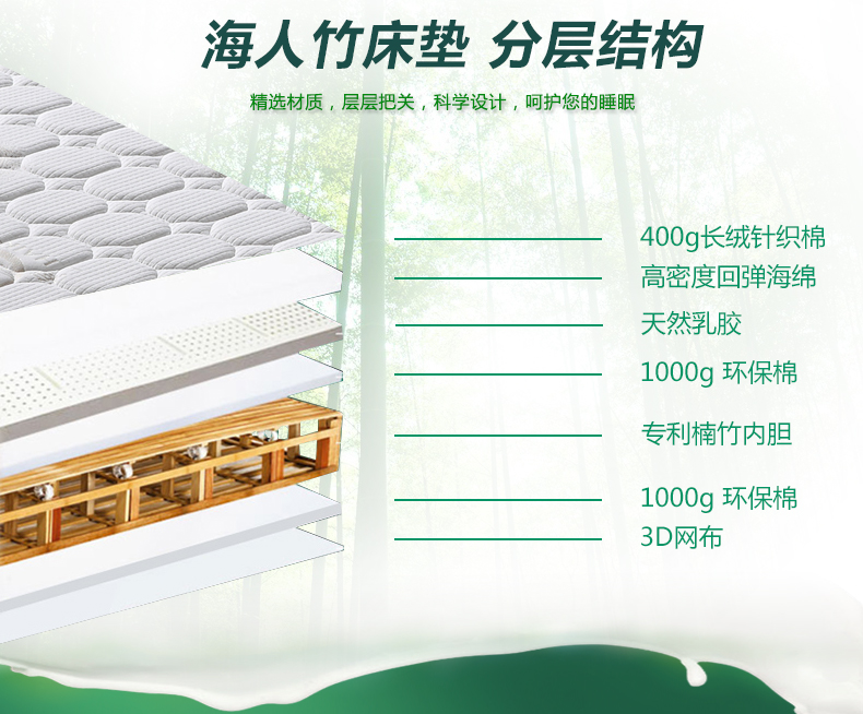 | 面料分類: 針織面料 | 品牌: 海人竹床墊 | 型號: W31 |